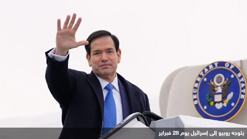 أعلن مسؤول أميركي أن وزير الخارجية الأميركي، ماركو روبيو، سيزور إسرائيل في 28 فبراير للقاء رئيس الوزراء الإسرائيلي، بنيامين نتنياهو، وذلك في ظل تصاعد التوترات بين الولايات المتحدة وإيران. ونقلت وكالة الصحافة الفرنسية عن المسؤول، الذي طلب عدم الكشف عن هويته، أن الزيارة تأتي في سياق التشاور بشأن التطورات الإقليمية، لا سيما الملف الإيراني. وكان نتنياهو قد زار واشنطن الأسبوع الماضي وأجرى محادثات مع الرئيس الأميركي، دونالد ترامب، حيث دعا إلى تبني نهج متشدد حيال إيران. وفي يونيو الماضي، أطلقت إسرائيل هجوما على إيران أدى إلى حرب إستمرت 12 يوما، وإنضمت الولايات المتحدة خلالها بضرب مواقع نووية رئيسية. وفي موازاة ذلك، أرسلت إدارة ترامب مبعوثين إلى جنيف لإجراء مفاوضات غير مباشرة مع مسؤولين إيرانيين بوساطة عمانية. وبينما أعلنت طهران تحقيق تقدم في المحادثات، لوح ترامب بإمكانية التدخل العسكري، وأمر بحشد قوات أميركية بالقرب من الأراضي الإيرانية. وتأتي هذه التطورات بعد حملة قمع واسعة شنتها السلطات الإيرانية الشهر الماضي ضد إحتجاجات داخلية، أسفرت، بحسب منظمات حقوقية، عن مقتل آلاف المحتجين، مما زاد من حدة التوتر في المنطقة.