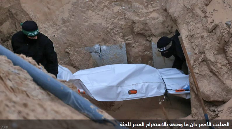 الصليب الأحمر يعلق على دفن وإستخراج “مدبر” لرفات رهينة بغزة