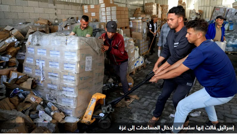 إسرائيل تكشف طبيعة "أول شحنة مساعدات" تدخل غزة منذ 2 مارس