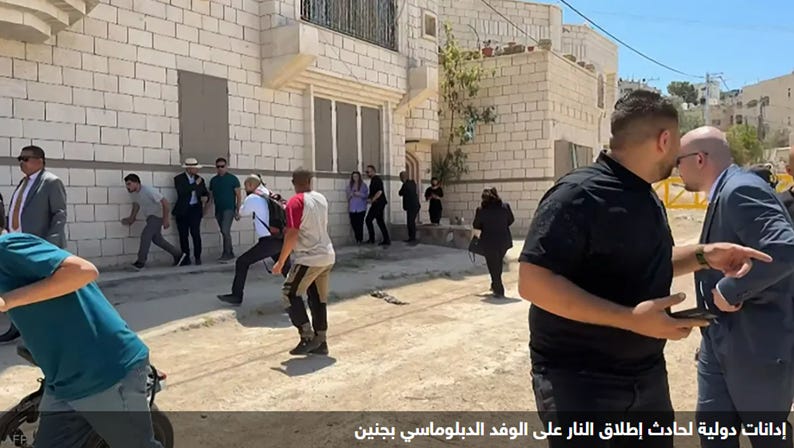 أكد مستشار وزارة الخارجية الفلسطينية، أحمد الديك، يوم أمس الأربعاء، أن إسرائيل تعمدت ترهيب أعضاء الوفد الدبلوماسي في جنين، والذي جاء للاطلاع على ما تعاني منه المحافظة من إنتهاكات، مشيرا إلى أن إطلاق النار على الوفد هو جزء لا يتجزأ مما يتعرض له الفلسطينيون في الضفة الغربية وقطاع غزة. وأوضح الديك: "كنت أترأس وفد الوزارة المرافق للبعثة الدبلوماسية التي كانت تتكون من 32 دولة ما بين سفير، أو قنصل، أو نائب سفير، أو نائب قنصل وكذلك ممثلين عن دولهم". وأضاف أن هذه الجولة جرى الإعلان عنها منذ أكثر من 10 أيام بهدف "إطلاع أعضاء السلك الدبلوماسي المعتمد لدى دولة فلسطين على ما تتعرض له محافظة جنين من إضطهاد وإنتهاكات، لا سيما في مدينة جنين وبلداتها وقراها". وتابع الدبلوماسي الفلسطيني: "ننفي بشدة رواية الجيش الإسرائيلي التي قال فيها أن الحادث وقع في منطقة قتال، لأن جميع سكان مخيم جنين تم تهجيرهم ونحن وقفنا عند البوابة على مدخل المخيم". وأضاف: "وصلنا في قافلة بسيارات دبلوماسية إلى المحافظة، ومكثنا فيها مدة تزيد على الساعتين ثم توجهنا لزيارة أطراف مخيم جنين، وخلال شرحنا للوفود الدبلوماسية واقع ومعاناة أهالي جنين بدؤوا بإطلاق نار كثيف تجاه الوفد". وشدد على أن ما جرى هو "إنتهاك غير مبرر وصارخ للقانون الدولي، وإتفاقية فيينا، وحصانة السفراء، ونحن نعتبر ما تعرضنا له هو جزء لا يتجزأ مما يتعرض له الشعب الفلسطيني في قطاع غزة وفي الضفة الغربية المحتلة". وأكد أنه "لا يوجد مبرر منطقي لما إرتكبته قوات الإحتلال من إنتهاك بإطلاق النار، وبث الرعب، وترهيب أعضاء السلك الدبلوماسي بهذه الطريقة، وجميع الحجج التي يتذرعون بها هي حجج واهية وغير صحيحة وهم يدركون أنها غير صحيحة". كما شدد على أن الحادث "عمق الأزمة التي تعاني منها إسرائيل دوليا، نتيجة إستمرارها في جرائم الضم والإبادة والتهجير ضد الشعب الفلسطيني، مما يكشف أن ما يجري هو جزء من مخططات تستهدف تصفية القضية الفلسطينية وبات العالم يدركها". ودعا مستشار وزارة الخارجية الفلسطيني الدول إلى "تصعيد ردود فعلها وصولا لوقف جميع الإنتهاكات ضد الشعب الفلسطيني". ودعا الدول إلى "تحويل المواقف والخطابات السياسية إلى إجراءات عملية تفرض على دولة الإحتلال وقف هذه الإنتهاكات، وتجبرها أن تنخرط في مسار سياسي لحل جميع الأزمات الناجمة عن الصراع، وبالتالي حل الصراع بالطرق الدبلوماسية".