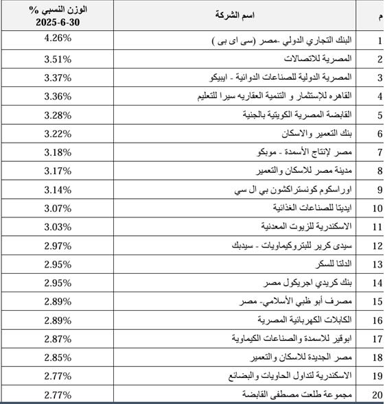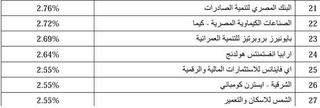 أعلنت البورصة المصرية، الشركات المكونة للمؤشر الجديد EGX35-LV إعتبارا من 3 أغسطس المقبل. ويضم المؤشر 35 شركة ذات التقلبات السعرية الأقل من بين الشركات الأكثر سيولة، وتتنوع بين 13 قطاع، مما يعكس التمثيل القطاعي الجيد لمكونات المؤشر.