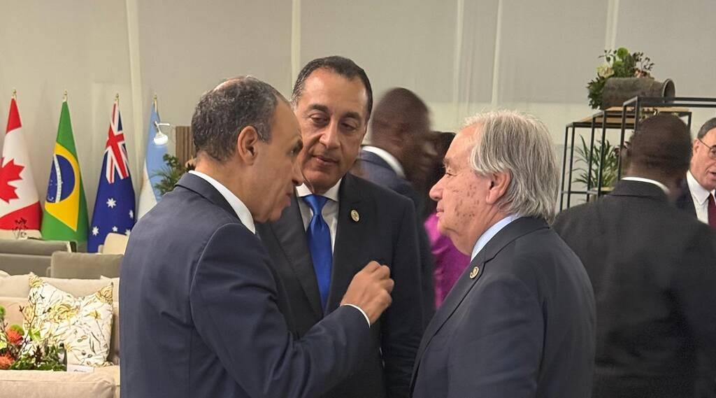 التقى، رئيس مجلس الوزراء المصري، الدكتور مصطفى مدبولي، مساء يوم أمس السبت، سكرتير عام الأمم المتحدة، أنطونيو جوتيريش، ومديرة صندوق النقد الدولي، كريستينا جورجيفا، بحضور وزير الخارجية والهجرة وشئون المصريين بالخارج. جاء ذلك على هامش مشاركته نيابة عن الرئيس عبد الفتاح السيسي في قمة مجموعة العشرين لعام 2025 بمدينة جوهانسبرج بجنوب أفريقيا. وخلال اللقاء مع سكرتير عام الأمم المتحدة، تم بحث أوجه الشراكة والتعاون بين مصر والمنظمة الأممية ووكالاتها، بالإضافة إلى إستعراض إستعدادات مصر لإستضافة المؤتمر الدولي للتعافي المبكر وإعادة الإعمار في غزة. وقد أشاد جوتيريش بالجهود المصرية في العمل من أجل إحلال السلام في المنطقة، مبرزا دور مصر المحوري في التوصل إلى إتفاق السلام خلال قمة شرم الشيخ. كما إستعرض رئيس الوزراء خلال لقائه مع مديرة صندوق النقد الدولي موقف برنامج الصندوق مع مصر، في ضوء قرب زيارة بعثة الصندوق مطلع ديسمبر لإجراء المراجعتين الخامسة والسادسة، وتمت مناقشة المؤشرات الإيجابية للاقتصاد المصري، بما في ذلك حجم الإحتياطي النقدي، وزيادة إستثمارات القطاع الخاص، وإرتفاع معدلات النمو، خصوصا في القطاعات الإنتاجية، مما يعكس قوة الاقتصاد المصري وإستقراره.