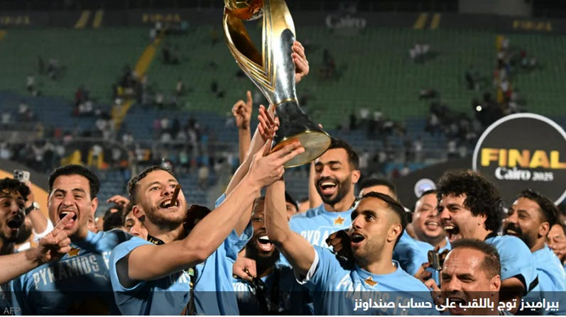 هنأ الرئيس المصري، عبد الفتاح السيسي، نادي بيراميدز، بعد تتويجه بلقب دوري أبطال أفريقيا على حساب صنداونز الجنوب أفريقي، يوم أمس الأحد. وقال الرئيس السيسي في منشور على منصتي "فيسبوك" و"إكس": "أتقدم بخالص التهنئة إلى فريق بيراميدز وجماهير الرياضة المصرية بمناسبة تحقيق هذا الإنجاز التاريخي بالفوز بدوري أبطال أفريقيا لكرة القدم لأول مرة في تاريخه". وأعتبر الرئيس المصري أن "هذا الإنتصار يجسد روح العزيمة والإصرار التي لطالما ميزت الرياضة المصرية، ويؤكد قدرة أنديتنا على التنافس بقوة في الساحة القارية والدولية. وأتمنى إستمرار النجاحات للكرة المصرية في كافة المحافل". ونجح الفريق المصري في التتويج بلقب دوري أبطال أفريقيا لأول مرة في تاريخه، بعد الفوز على صنداونز 2-1 في إياب المباراة النهائية بالقاهرة. وتقدم بيراميدز بهدفين أحرزهما فيستون ماييلي وأحمد سامي، في الدقيقتين 23 و56، بينما قلص الضيوف الفارق بهدف وحيد سجله إكرام راينرز في الدقيقة 75. وكان الفريقان تعادلا ذهابا بنتيجة 1-1 في بريتوريا. وأصبح بيراميدز رابع نادي مصري يتوج باللقب القاري، بعد الأهلي حامل لقب العامين الماضيين والأكثر تتويجا بالكأس برصيد 12 مرة، والزمالك الذي حقق البطولة 5 مرات، والإسماعيلي أول الأندية المصرية الفائزة باللقب عام 1969.