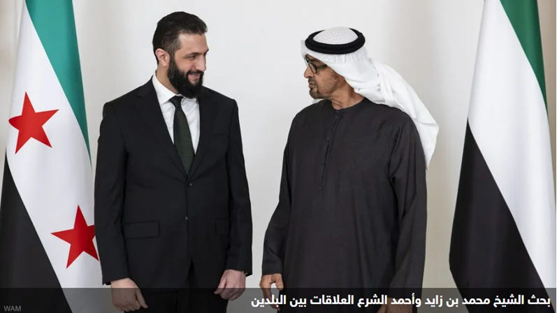 رسالة شكر وعرفان من أحمد الشرع إلى رئيس دولة الإمارات
