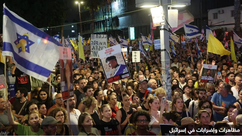خرج مئات الآلاف من المتظاهرين، يوم أمس الأحد، إلى الشوارع في كل أنحاء إسرائيل مطالبين بإنهاء الحرب وإبرام إتفاق لإعادة الرهائن المحتجزين في قطاع غزة، فيما تتحضر إسرائيل لعملية عسكرية جديدة للسيطرة على مدينة غزة. وجاءت الإحتجاجات بعد أكثر من أسبوع من موافقة المجلس الأمني في إسرائيل على خطط للسيطرة على غزة في ظل حرب مدمرة وحصار مستمرين منذ 22 شهرا. وفي ميدان الرهائن في تل أبيب الذي أصبح رمزا للاحتجاجات خلال الحرب، رفع علم إسرائيلي ضخم وصور للرهائن المحتجزين في قطاع غزة. وأغلق المتظاهرون طرقا رئيسية في المدينة من بينها الطريق السريع الذي يربط تل أبيب بالقدس، وأشعلوا إطارات متسببين بإختناقات مرورية، وفقا لوسائل إعلام محلية. وقالت صحيفة "يدعوت أحرنوت" أن "المنظمين يقولون أن 400 ألف شخص حضروا مظاهرات الأحد، وهو عدد غير مسبوق". وأضافت: "أعجب المسؤولون الأميركيون بشدة بصور مظاهرات تل أبيب والأعداد الهائلة". ونقلت عن مسؤول كبير في البيت الأبيض قوله عند رؤية الصور: "واو!". وأفاد مصدر مطلع على التفاصيل أن الصور نقلت إلى الرئيس الأميركي، دونالد ترامب. من جهتها، قالت صحيفة "هآرتس" الإسرائيلية: "تجمع مئات الآلاف من الإسرائيليين في ساحة الرهائن.. تعد هذه المظاهرة أكبر إحتجاج في إسرائيل منذ سبتمبر 2024، عندما قتل ستة رهائن في غزة أثناء إقتراب الجيش الإسرائيلي من موقع إحتجازهم". وكان المتظاهرون ومنتدى عائلات الرهائن والمحتجزين دعوا إلى إضراب شامل في كل أنحاء إسرائيل. وقال دورون ويلفاند (54 عاما) خلال تظاهرة في القدس: "أعتقد أن الوقت حان لإنهاء الحرب، حان الوقت لتحرير الرهائن ومساعدة إسرائيل على التعافي والوصول إلى شرق أوسط أكثر إستقرارا". وعلق رئيس الوزراء، بنيامين نتنياهو، على هذه التظاهرات بالقول: "أن الدعوات لإنهاء الحرب بدون هزيمة حركة حماس من شأنها تقوية الموقف التفاوضي لحماس وتأجيل إطلاق سراح الرهائن، وستضمن أيضا تكرار أهوال 7 أكتوبر 2023، وستضطر إسرائيل إلى أن تخوض حربا بلا نهاية". كما هاجم وزير المالية اليميني المتطرف، بتسلئيل سموتريتش، التظاهرات وقال: "يستيقظ شعب إسرائيل هذا الصباح على حملة مشوهة وضارة تخدم مصالح حماس التي تخفي الرهائن في الأنفاق وتسعى لدفع إسرائيل إلى الإستسلام لأعدائها وتعريض أمنها ومستقبلها للخطر". أما وزير الأمن القومي، إيتمار بن غفير، فإعتبر أن الدعوة إلى الإضراب "فشلت". في المقابل، رفض زعيم المعارضة في إسرائيل، يائير لبيد، هذه المزاعم، وأعتبر أن "الشيء الوحيد الذي سيضعف حماس هو إسقاط هذه الحكومة الفاسدة والفاشلة". وكان قرار إسرائيل توسيع عملياتها في الحرب قد واجه تنديدا دوليا ومعارضة داخلية أيضا.