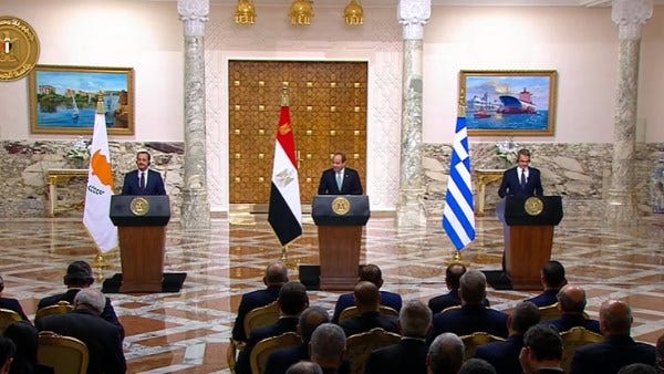 أكد الرئيس عبدالفتاح السيسي، رئيس جمهورية مصر العربية، على ضرورة تكثيف الجهود والضغوط من أجل التوصل إلى التهدئة في المنطقة والتعامل مع أزماتها، وعلى رأسها الحرب في غزة ولبنان وتحقيق الإستقرار في سوريا وليبيا واليمن والسودان. كما أكد الرئيس في كلمته خلال القمة الثلاثية بين مصر وقبرص واليونان، يوم أمس الأربعاء، والتي نقلتها "القاهرة الإخبارية"، على تجنب تصعيد الصراع في المنطقة وتحويله لحرب شاملة، مما يترتب عليه تداعيات كارثية تطال الجميع، سواء كانت تداعيات إقتصادية وسياسية أو أمنية، فضلا عن الموجات الغير مسبوقة من النازحين. وأضاف الرئيس السيسي، أن التعاون الإقتصادي بين البلاد الثلاثة يمثل خطوة إستراتيجية حيوية، ليس فقط من ناحية مساهمته في تعزيز النمو الإقتصادي، ولكن أيضا بإعتباره خطوة محورية نحو تعزيز التكامل الإقتصادي الإقليمي الذي نطمح إليه.