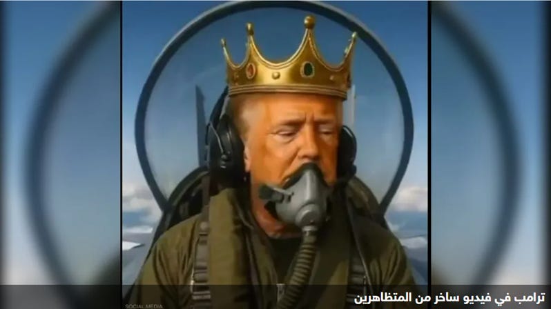 نشر الرئيس الأميركي، دونالد ترامب، مقطع فيديو معدلا بالذكاء الإصطناعي يظهر فيه مرتديا تاجا ملكيا وهو يقود طائرة حربية تلقي قاذورات على حشود من المتظاهرين، مما أثار موجة غضب عارمة داخل الولايات المتحدة، وفتح الباب أمام نقاش حول حدود السخرية السياسية. وجاءت التظاهرات ردا على ما وصفه المحتجون بـ”السلطوية المتزايدة” في إدارة ترامب، وتحولت إلى إختبار جديد للعلاقة بين الرئيس الأميركي وشارعه الداخلي.