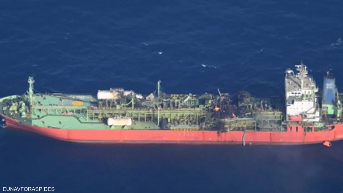 محاولات لإنقاذ ناقلة نفط مشتعلة في خليج عدن