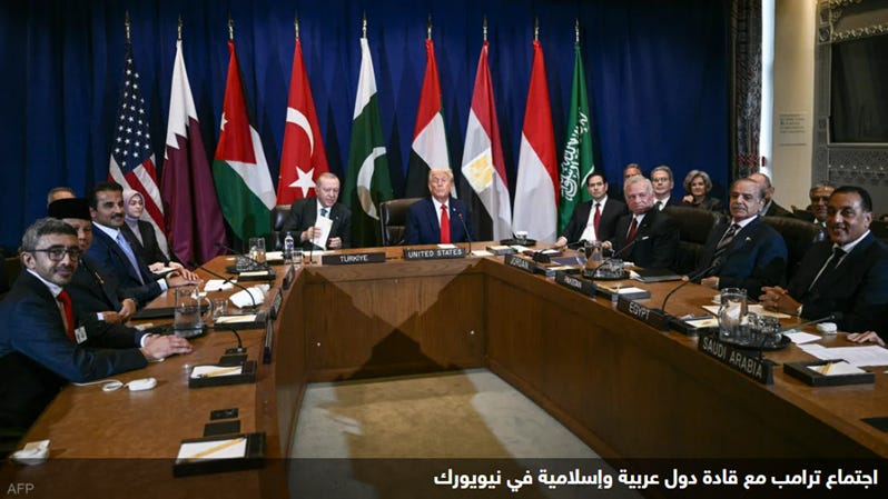 خلال لقائه مع قادة دول عربية وإسلامية في نيويورك، أكد الرئيس الأميركي، دونالد ترامب، أهمية هذا الإجتماع من أجل إنهاء الحرب في غزة وإطلاق سراح الرهائن. وأفاد ترامب بأن إجتماعه مع قادة دول عربية وإسلامية في نيويورك “كان ناجحا”. وأضاف ترامب: “إجتماعنا مع قادة في الشرق الأوسط مهم لإيجاد حل للحرب في غزة“. وأشاد بدور قطر في جهود الوساطة حول غزة، مضيفا: “نبذل كل الجهود لإعادة الرهائن من غزة”. وإنتقد ترامب الأمم المتحدة خلال خطابه أمام الجمعية العامة، يوم أمس الثلاثاء، معتبرا أنها “لا تساهم في بناء السلام”. وصرح ترامب في كلمة مطولة تناولت العديد من الموضوعات قائلا: “تتمتع الأمم المتحدة بقدرات هائلة، لكنها لا ترقى حتى ولو بقليل إلى المستوى المطلوب”، مشيرا إلى أن المنظمة “مجرد كلمات فارغة لا تحل الحروب”. وبشأن الإعتراف بدولة فلسطين، فقد إعتبر ترامب أن قرارات بعض حلفاء واشنطن تشكل “مكافأة على فظائع حماس، بما فيها هجوم السابع من أكتوبر”، مجددا دعوته للحركة إلى “إطلاق سراح جميع المحتجزين في غزة دفعة واحدة”. وتحدث عن جهوده “لإنهاء الحرب في غزة”، ولإنهاء “7 حروب” حول العالم، مؤكدا أنه يستحق “جائزة نوبل للسلام“.