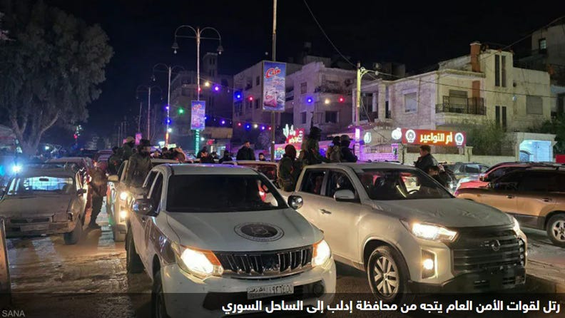 رتل لقوات الأمن يتجه من إدلب للساحل لملاحقة "فلول الأسد"